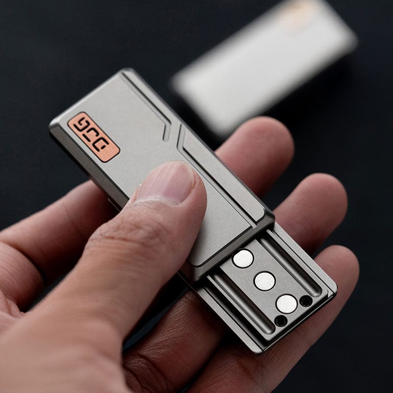 Designed by DJG, The Spirit is a minimalist magnetic slider with a tuning fork mechanism. Features 3 crisp clicks per side (6 total), sharp feedback, and smooth jiggly motion. Pairings: stainless steel + brass / titanium + copper.