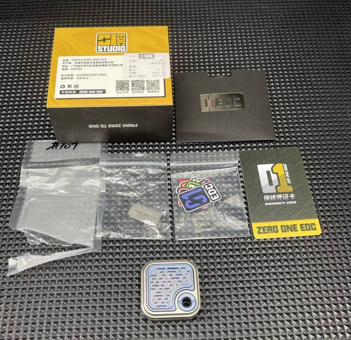 The MAZE BLOCK by 01 EDC is a mechanical slider with three play modes: side push, maze plate, and buttons. It offers clear feedback and a satisfying ¡®ding ding¡¯ sound. The maze plate features a ceramic bead for tactile exploration, and the plates are interchangeable with previous versions. Enjoy rhythmic play and stress relief with every push!